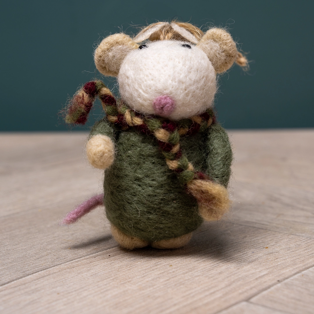 Hang this cute Christmas Mouse ornament on your tree, or add it to wreaths and garlands for a playful, woodland-inspired touch. Its unique design also makes it a lovely addition to gift wrapping, bringing a personal and festive touch to holiday presents. The green coat and scarf provide a pop of holiday color, making it versatile for traditional or rustic decor.