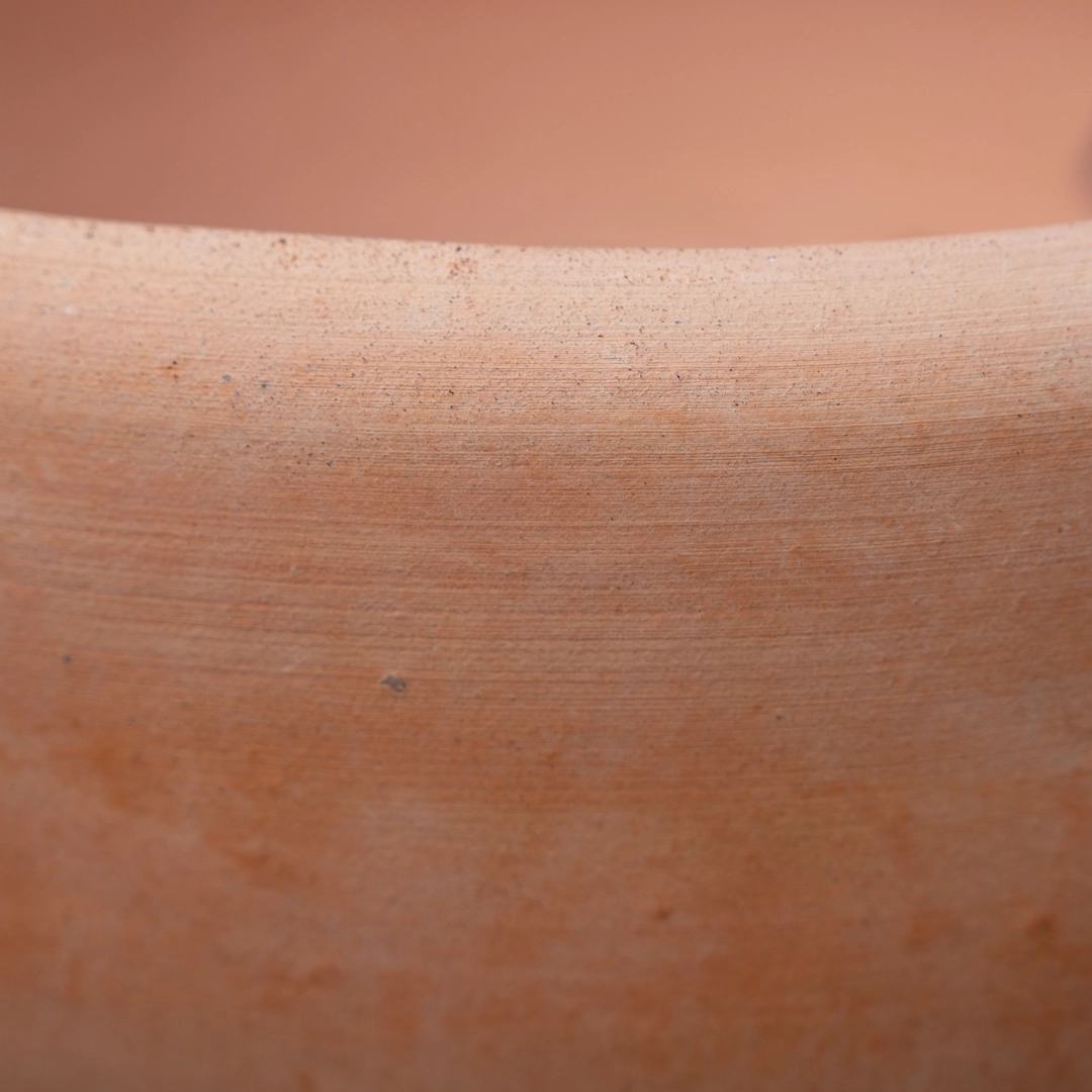 - Natural terracotta finish in warm peachy-pink tones