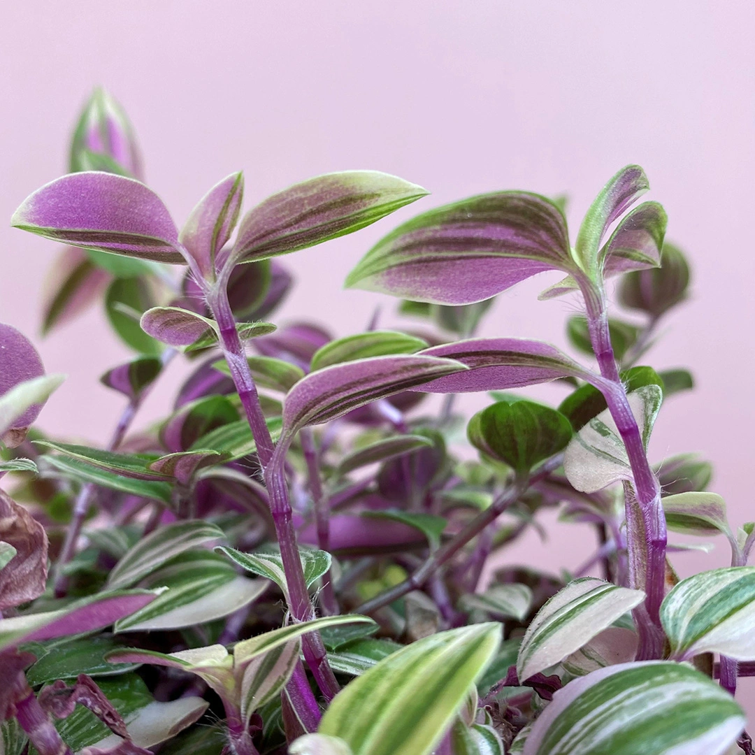 Tradescantia 'Quadricolour' is a gorgeous variety of Tradescantia, with thin, fleshy, brightly coloured stems and beautifully variegated leaves in shades of pink, purple, green and cream. Tradescantia make fantastic houseplants: Minimal watering, location versatility, temperature tolerant, they are an all round winner. Quadricolour makes a great addition to a plant collection as its trailing habit, divine variegation and succulent texture contrast beautifully with many other houseplants.