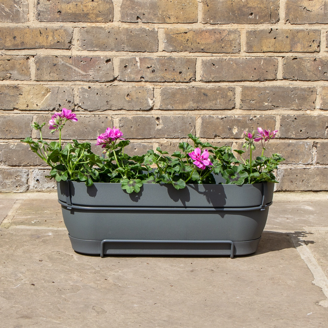 Buy Vibia Campana Balcony Trough Anthracite 50cm size at The Boma Garden Centre in Kentish Town, London. Visit our garden centre in London and check our wide range of plants & gardening products. We also offer many other products in our webshop. We look forward to seeing you soon!