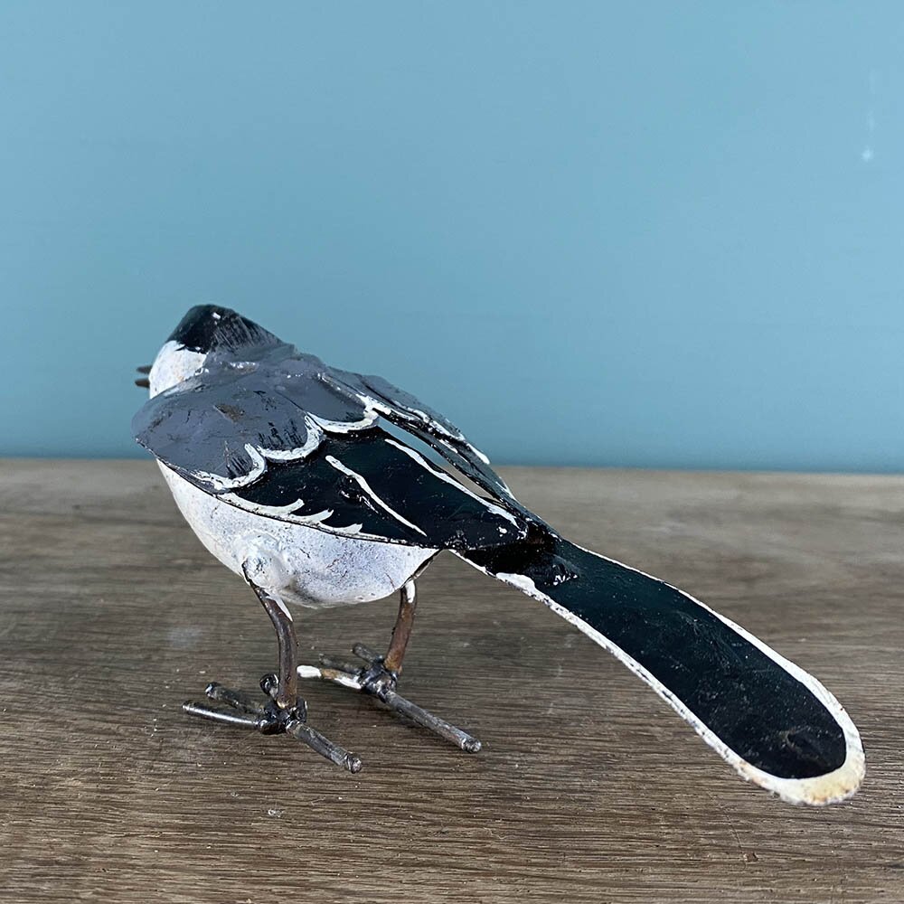 Lovingly handmade, this charming Wagtail will keep you company in the garden throughout the year. Each one is unique, having been made from scraps of recycled oil drums and hand painted by local artisans. Supporting Fair Trade in Zimbabwe. Makes a perfect gift for any occasion.