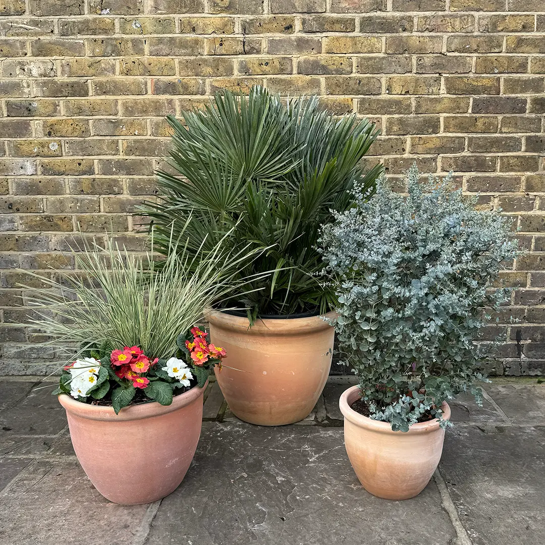Available in three versatile sizes, this planter is perfect for showcasing everything from compact herbs to statement shrubs. Its generous form encourages healthy root development, while the porous terracotta promotes breathability and optimal soil moisture balance, helping plants thrive.