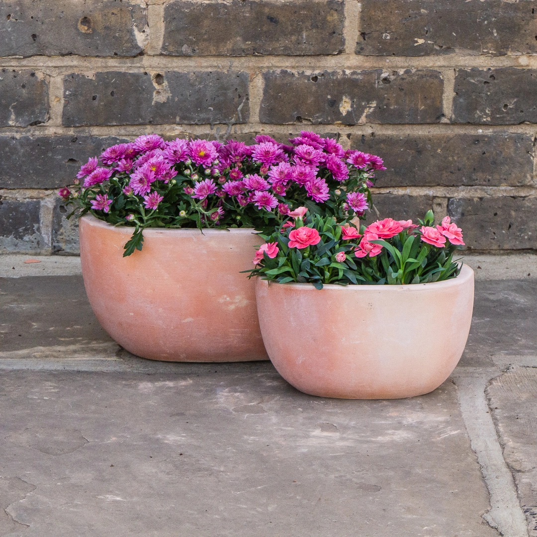 Whitewash Terracotta Handmade Mini Oval Planter (Pot Size D22cm x H13cm) Outdoor Plant Pot